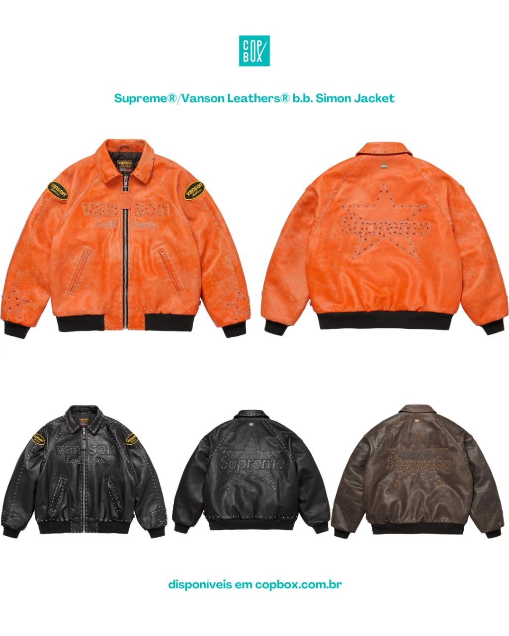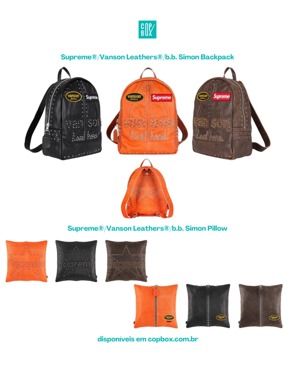Se você está de olho nos Box Logo Hoodies, nos beanies ou em qualquer peça da collab Supreme × Vanson Leathers × b.b. Simon, essa é a hora de se movimentar: