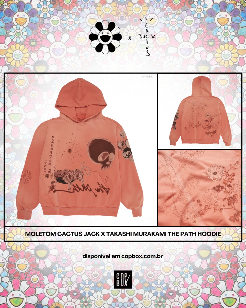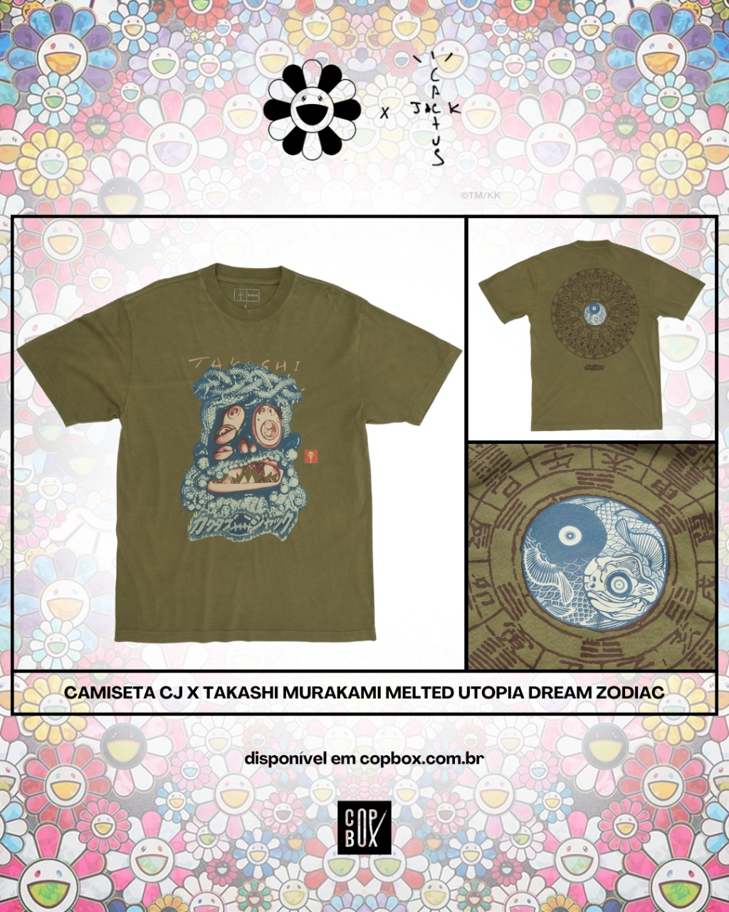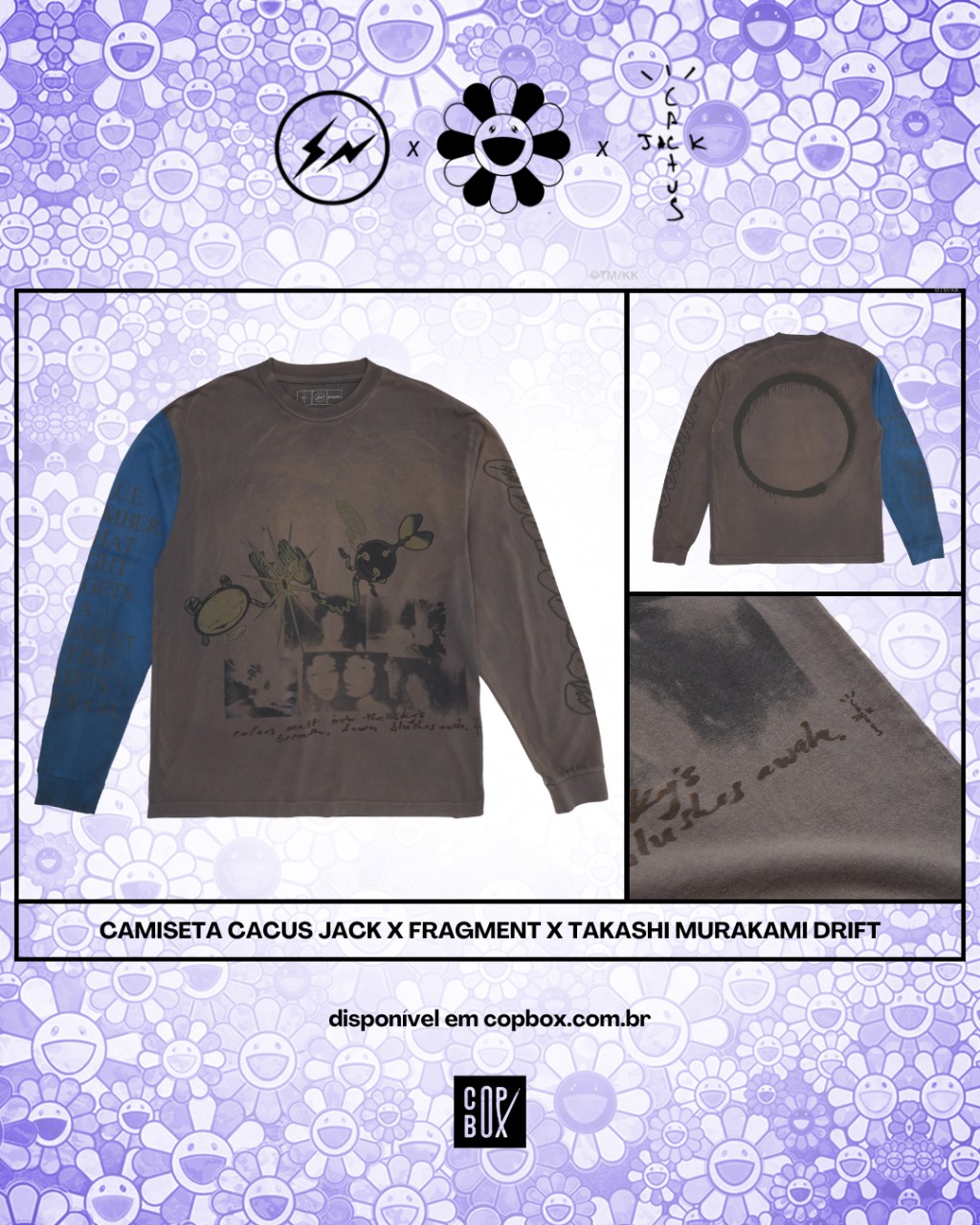 Além da collab tripla, há também uma linha exclusiva entre Cactus Jack e Murakami, sem a presença da Fragment. Essa coleção se aprofunda ainda mais no universo artístico de Murakami, trazendo uma estética mais contemplativa e distorcida: