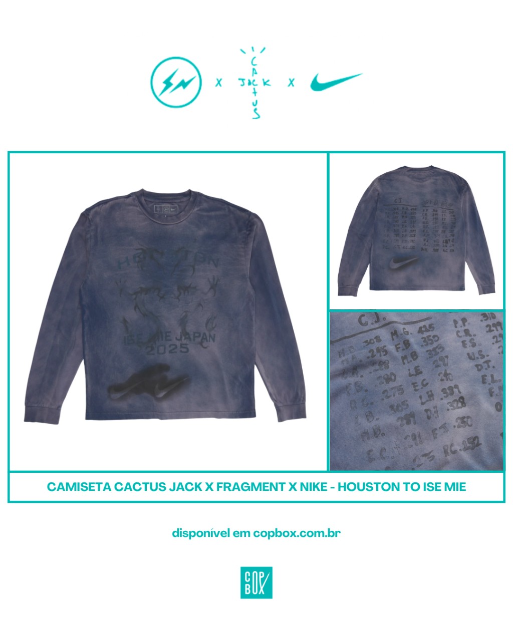 A presença de Fragment traz a precisão e o minimalismo japonês, enquanto Cactus Jack adiciona uma pegada visceral e emocional, tipicamente ligada ao universo de Travis Scott.