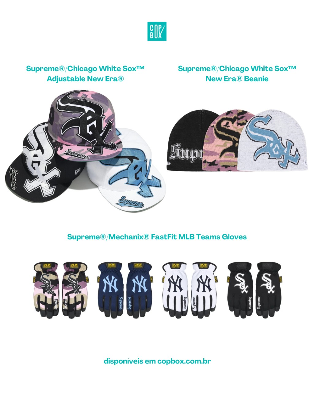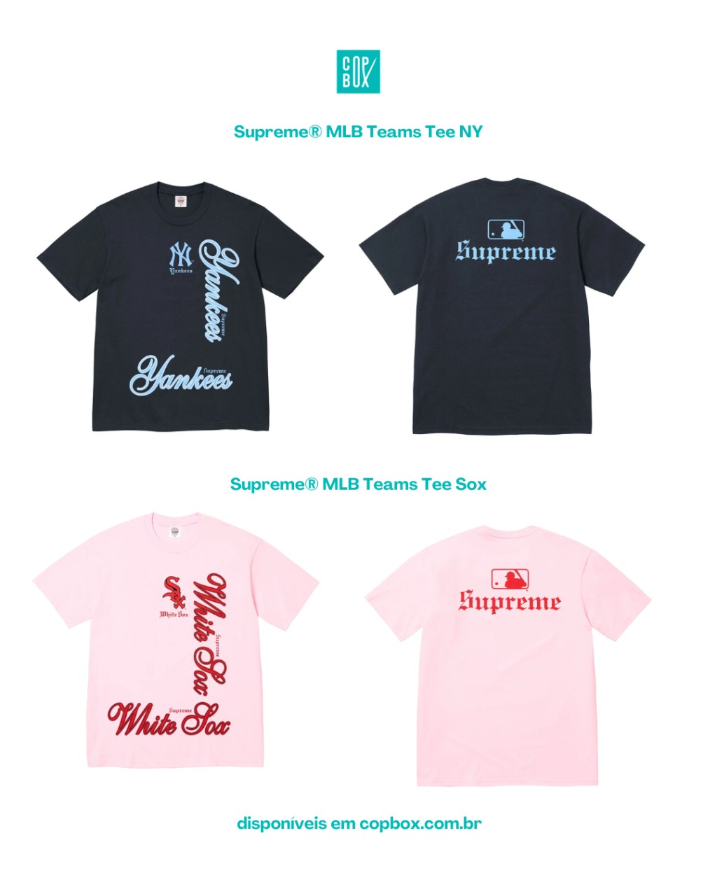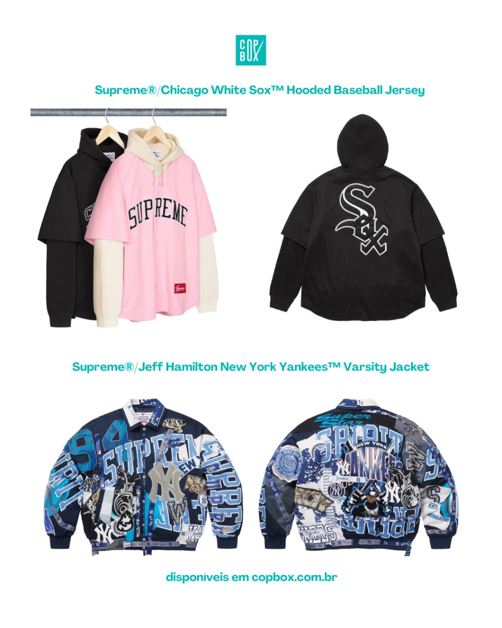 E o melhor: toda a seleção principal da Supreme x MLB Week 17 já está em pré-venda na (copbox.com.br) com peças importadas diretamente dos EUA e tamanhos limitados dentro da categoria “Supreme FW25 – Week 17” no site.