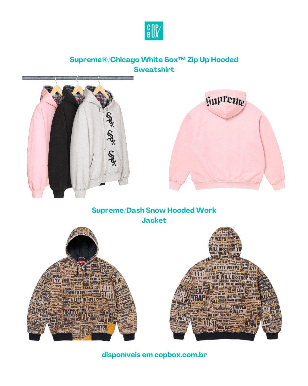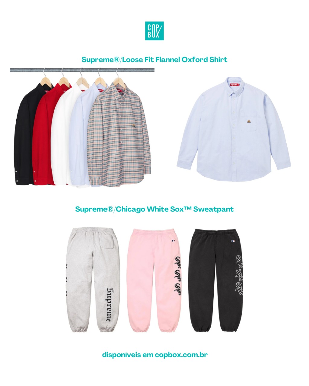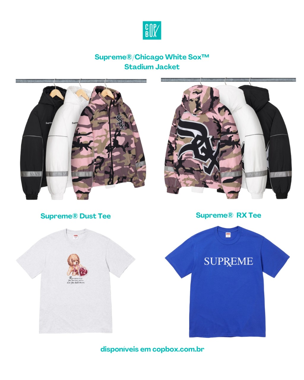 E o melhor: toda a seleção principal da Supreme x MLB Week 17 já está em pré-venda na (copbox.com.br) com peças importadas diretamente dos EUA e tamanhos limitados dentro da categoria “Supreme FW25 – Week 17” no site.