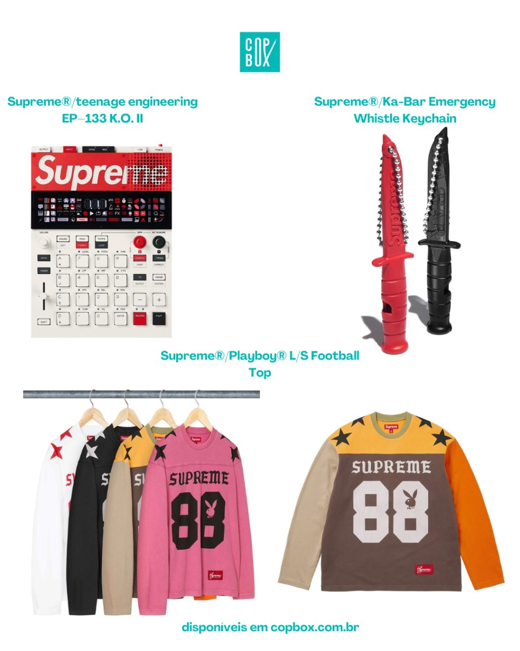 Essa tradição transforma o EP-133 K.O. II Supreme em mais do que um acessório estranho no droplist: ele entra na mesma categoria de itens icônicos como o drum machine Rhythm King, o Technics turntable e os boomboxes Supreme que já apareceram em temporadas passadas.